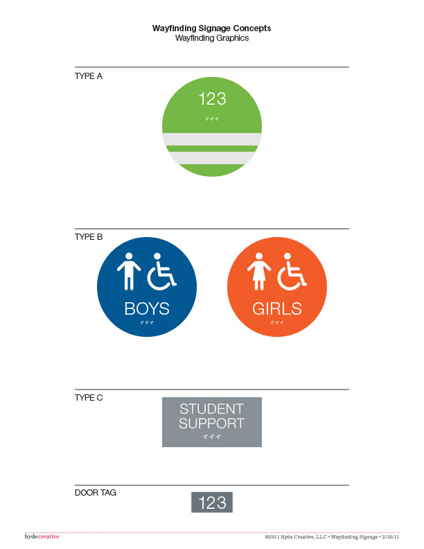 We developed a basic identity and wayfinding strategy for easy and quick deployment at all schools in the system.