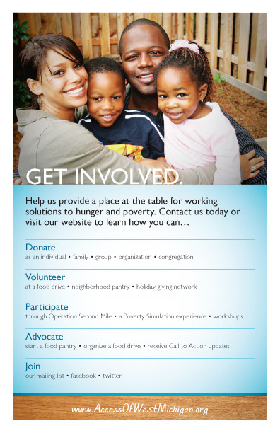 Access of West Michigan was ready to take their marketing materials to another level, corresponding with their re-focused approach to the services they provide. Their previous identity was centered around the idea of being a network, linking people and services within the community. On further discovery, Access really does so much more than that. With Poverty Education workshops and casework services, conversations with churches and supportive organizations, Access really is an organization that enables others to thrive.
